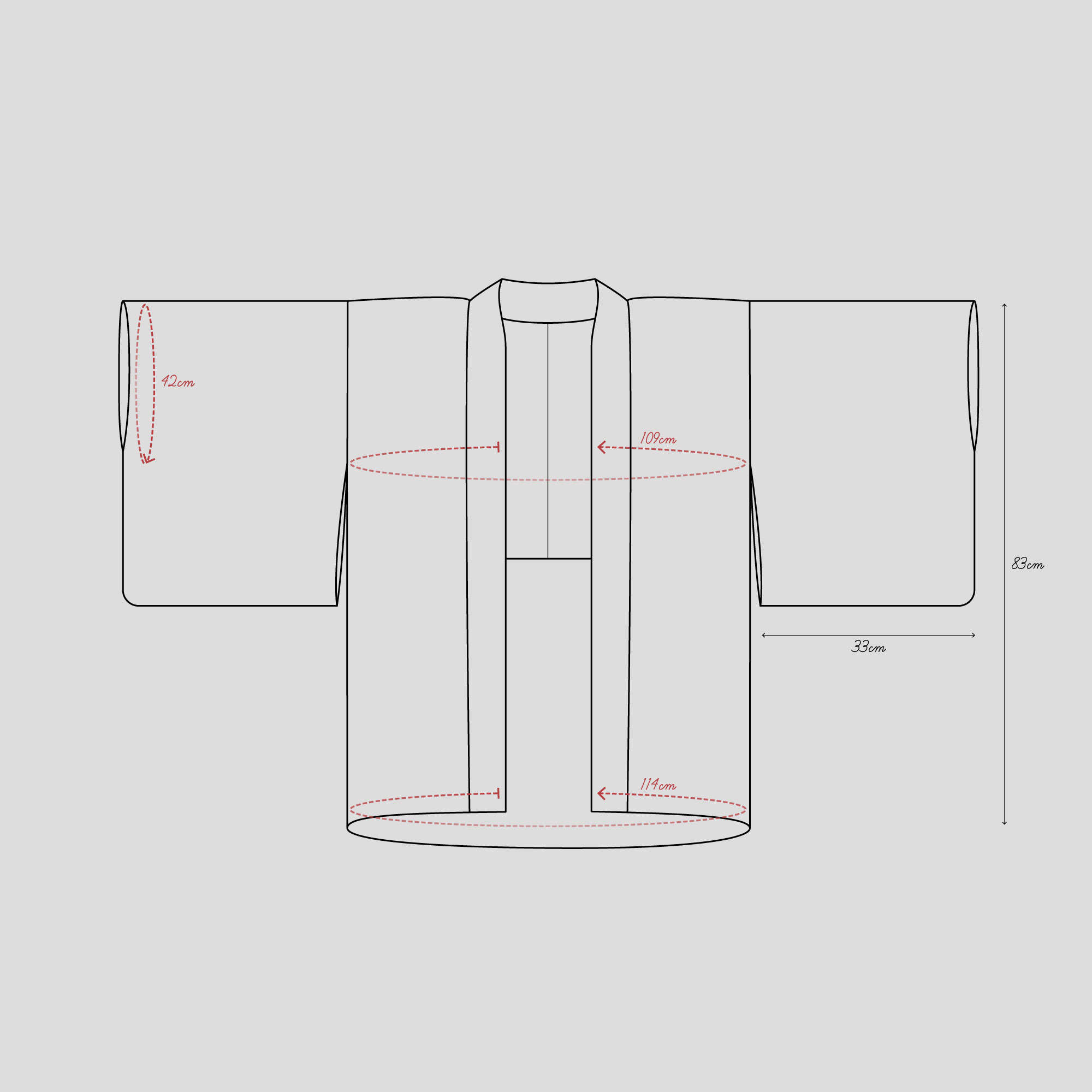 Léger et aéré, ce haori est idéal pour les saisons chaudes, ajoutant une touche festive et raffinée à votre silhouette estivale.